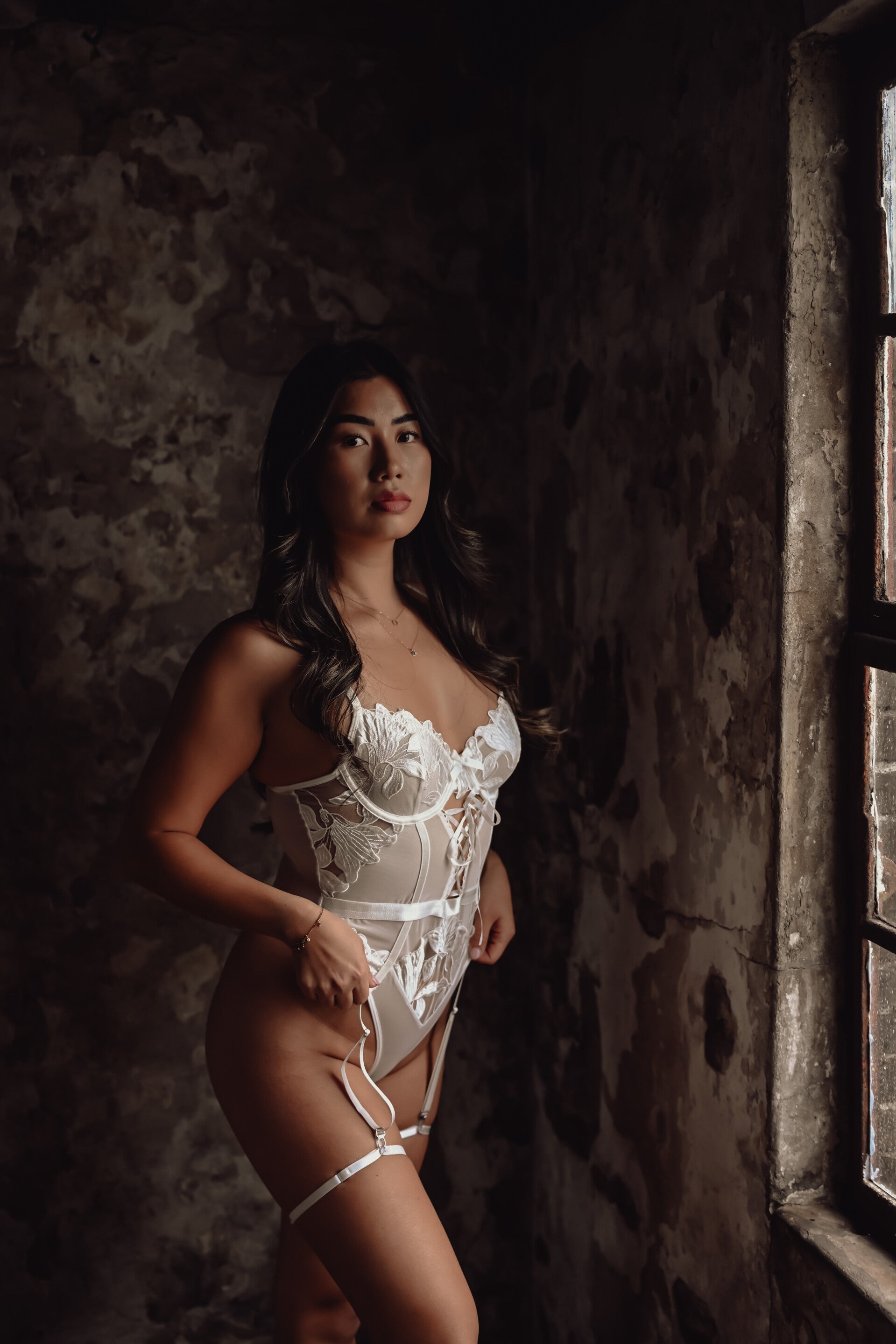 Een romantische body met delicaat kant en een klassieke pasvorm. Deze body vangt moeiteloos een gevoel van tijdloze vrouwelijkheid. Puur, zacht en sterk. Prachtig voor je shoot in een daglichtstudio of juist in een donkere moody omgeving!